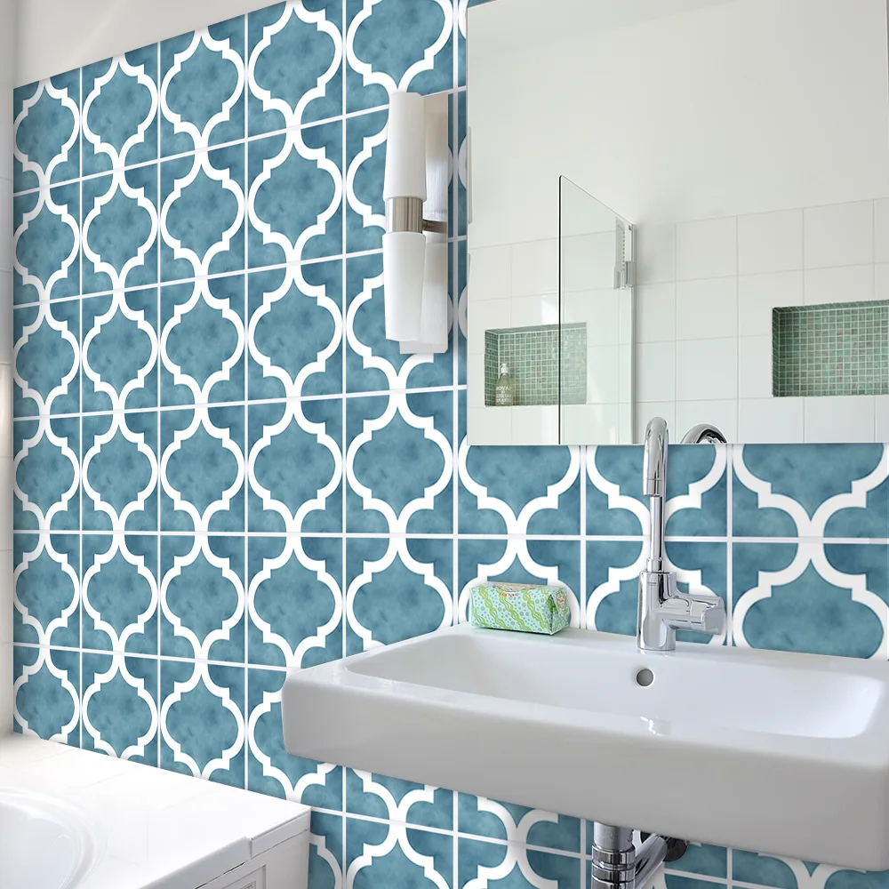 Waterproof Wallpaper Bathroom Kitchen Blue Moroccan Tile