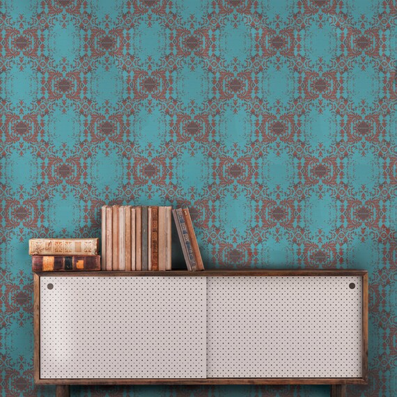 Rust And Turquoise Wallpaper Roll Bohemian Wallpaper Kitchen Etsy