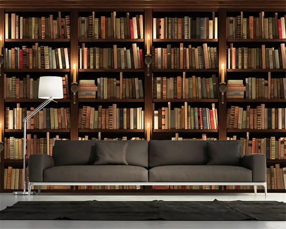 Beibehang Custom Wallpaper 3d European Style Sofa Tv Background Wallpaper Wall Bookcase Books Bookshelf 3d Wallpaper