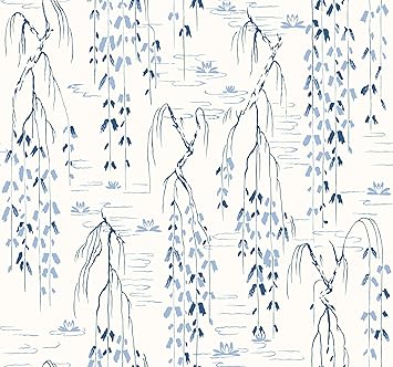 York Wallcoverings Af6582 Willow Branches Wallpaper White Blue