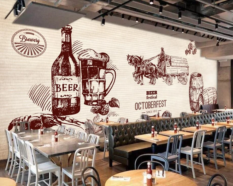 Custom Photo Mural 3d Wallpaper Beer Trademark Restaurant Bar