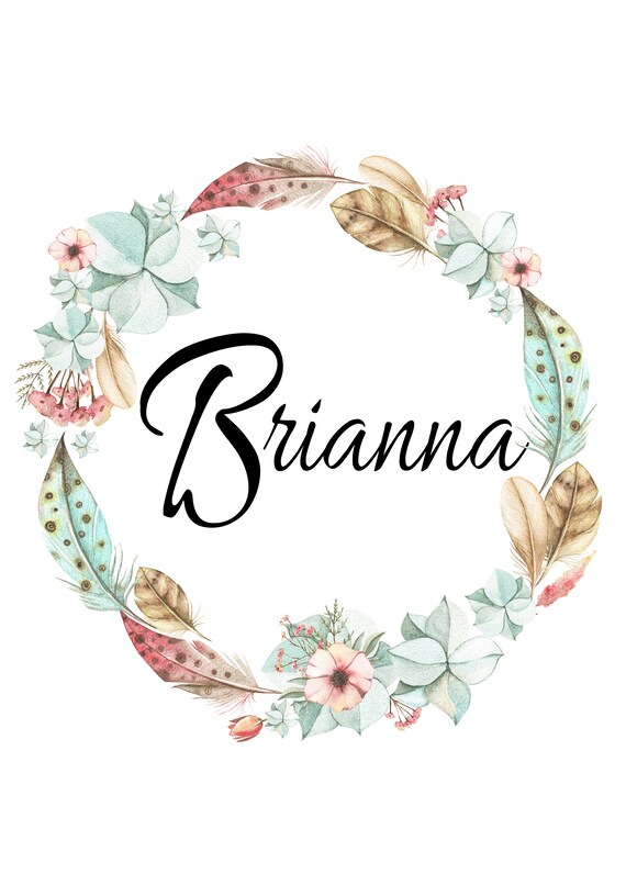 Name Brianna Boho Watercolor Botanical Feather Pastels Wall Etsy