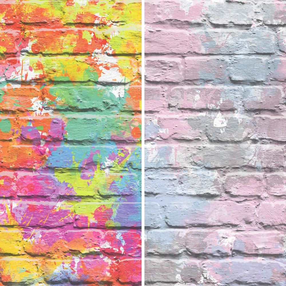 Muriva Painted Brick Pattern Wallpaper Paint Splash Colourful