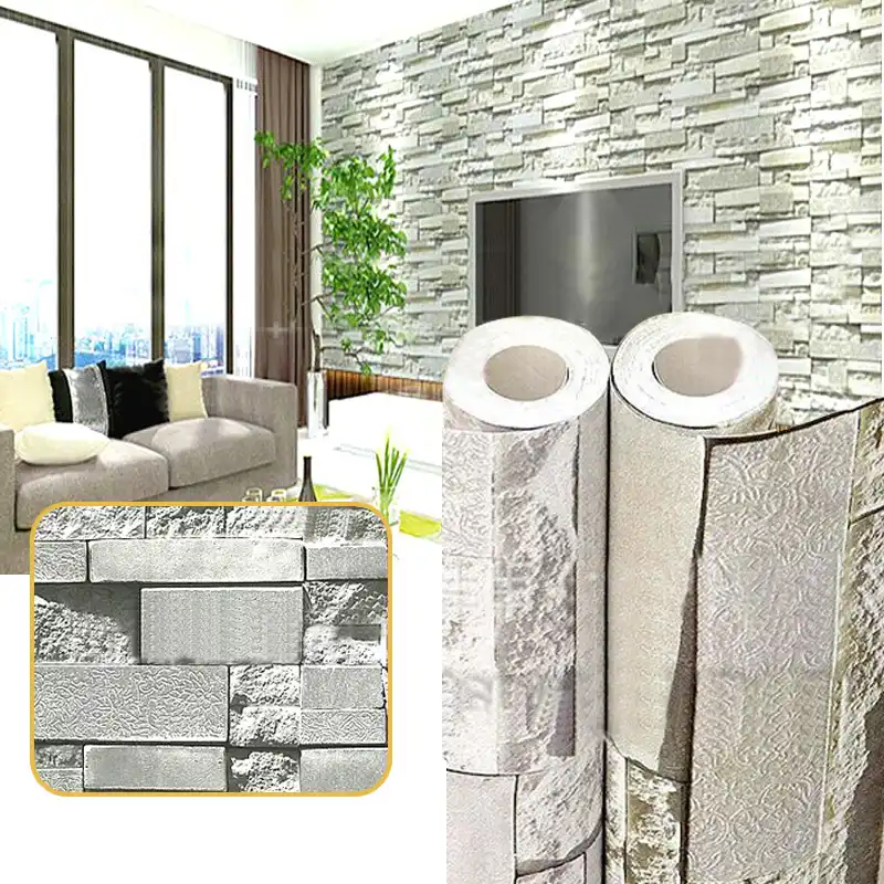 Pvc Wallpaper 3d Embossed Brick Wallpaper Living Room Kitchen