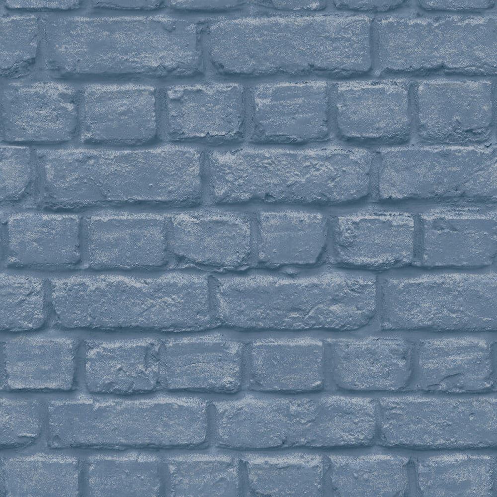 Urban Brick Effect Blue Wallpaper Embossed Textured Industrial