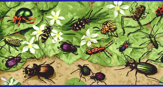 Realistic Bug Wallpaper Border White Floral Colorful Bugs Etsy