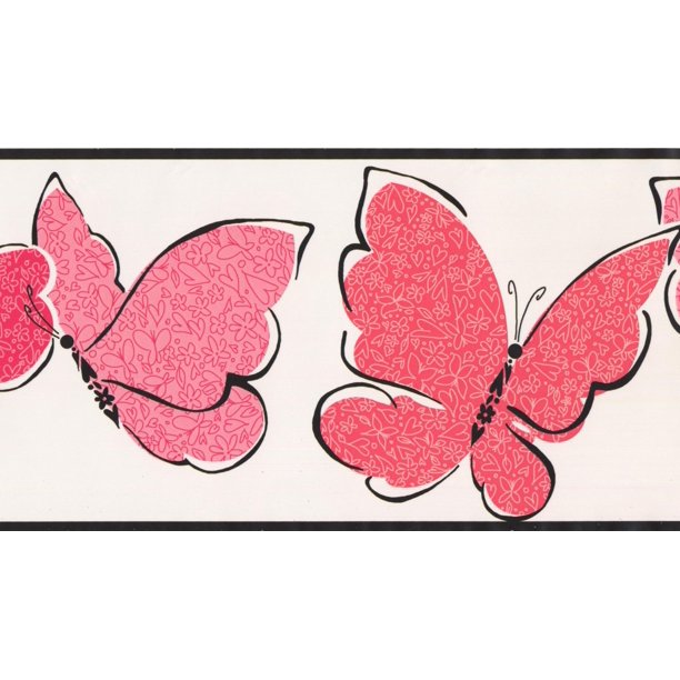 Wallpaper Border Red Pink Butterflies White Wall Border For Kids
