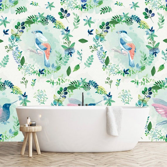 Birds And Butterflies Wallpaper Bathroom Decor Bathroom