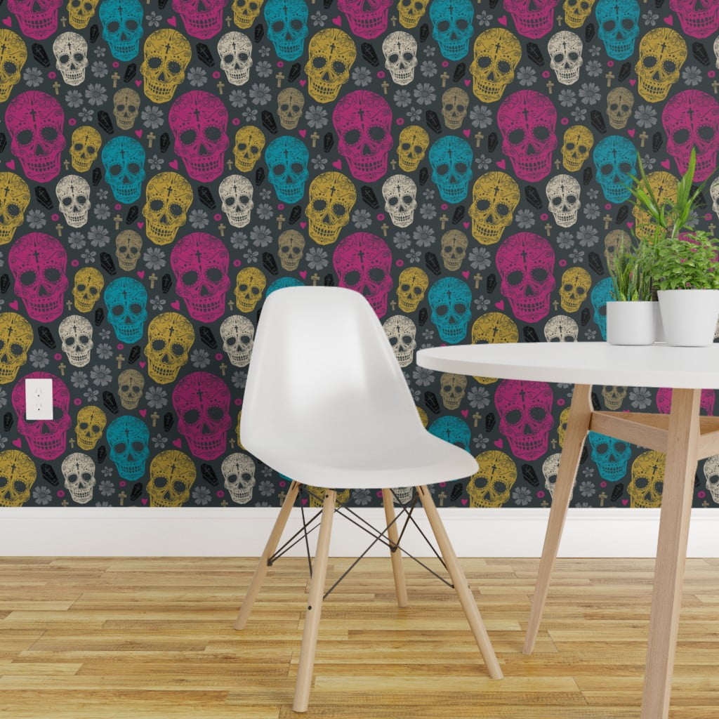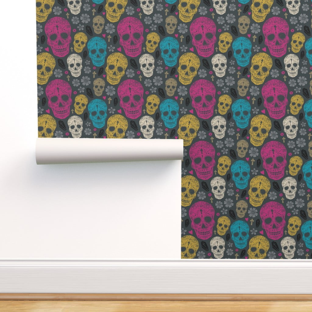 Removable Water Activated Wallpaper Calavera Sugar Skull Day Of The Dead Walmart Com Walmart Com