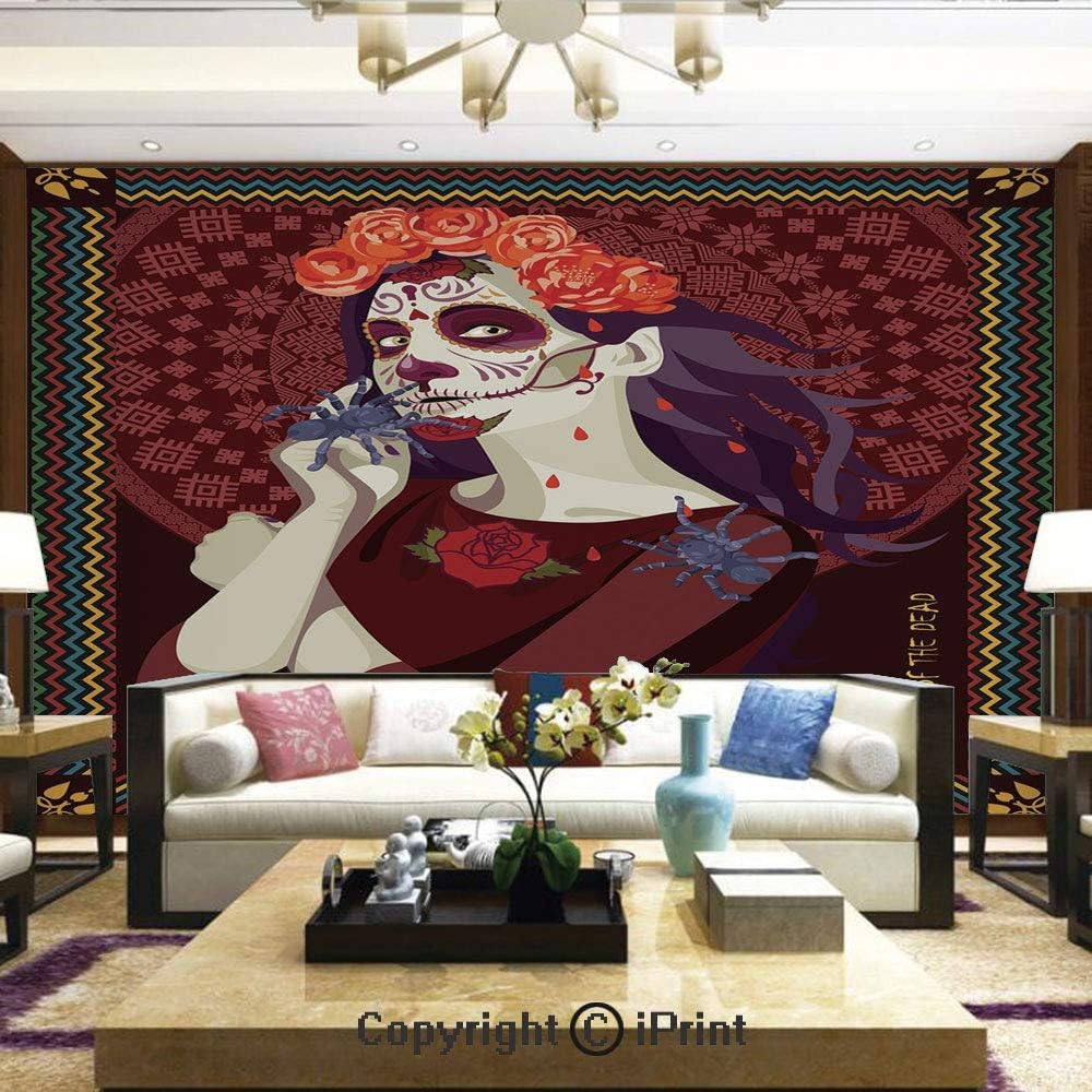 Amazon Com Lionpapa Mural Self Adhesive Large Wallpaper Better Designs For Living Room Dia De Los Muertos Print Woman With Calavera Makeup Spanish Rose Art Home