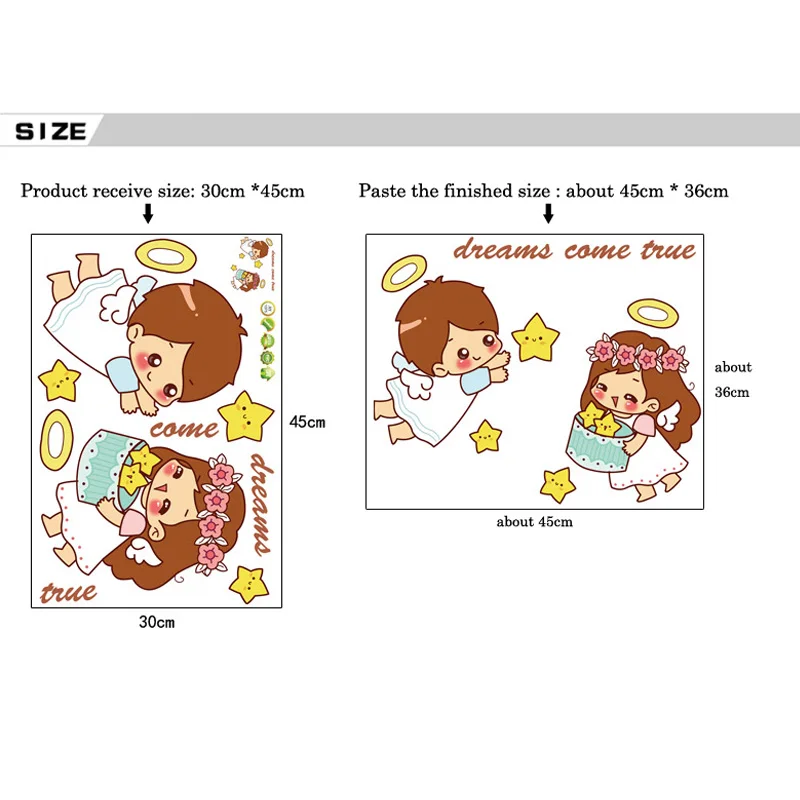 Cartoon Cute Little Angel Wall Sticker For Kids Baby Rooms Bedroom