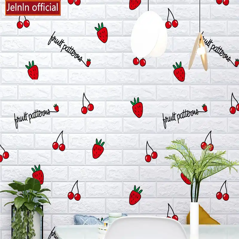 Cartoon Fruit Pattern Wallpaper Self Adhesive 3d Wall Sticker