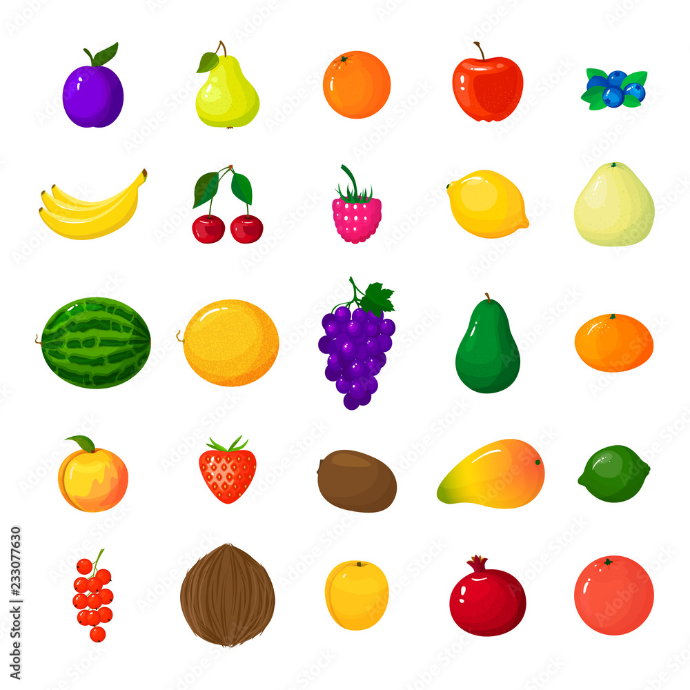 Set Of Colorful Cartoon Fruit Icons Vector Illustration Berries
