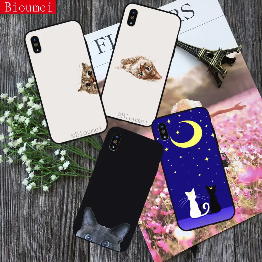 Bioumei Cartoon Moon Cat Wallpapers Soft Tpu Case For Iphone Xs Xr