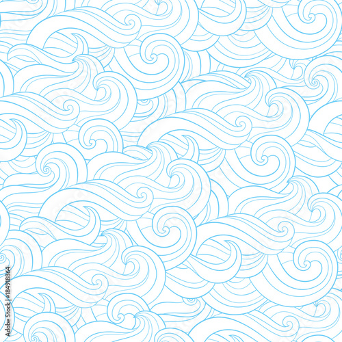 Vector Seamless Cartoon Wave Hand Drawn Pattern Unusual Waves