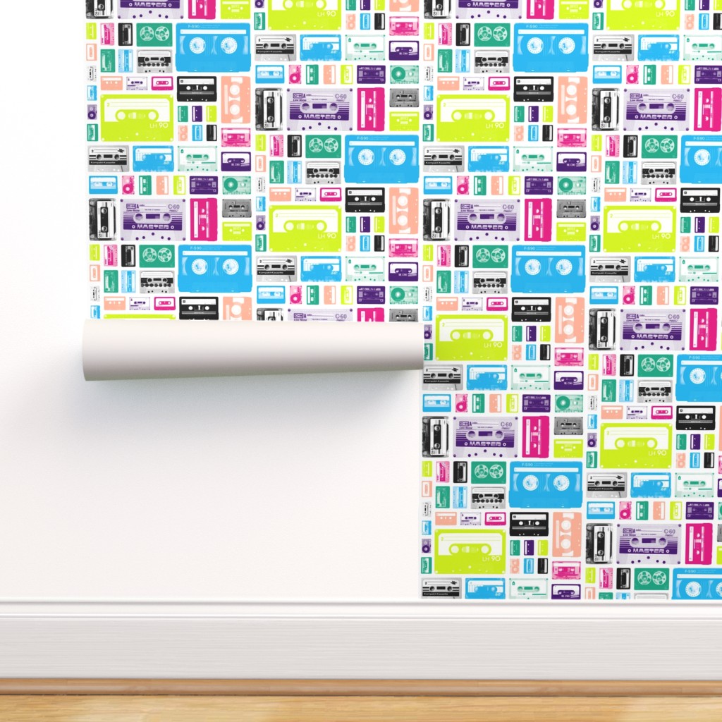 Removable Water Activated Wallpaper Hipster 80s Cassette Tape