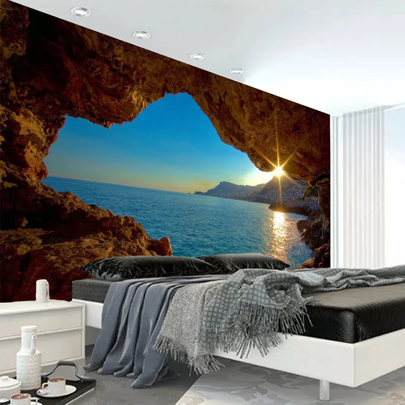 Custom Photo Wallpaper 3d Cave Sunrise Seaside Nature Landscape