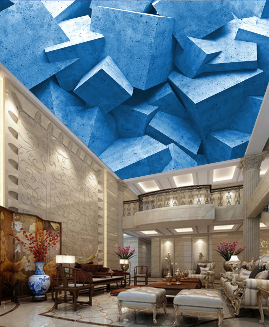 3d Wallpaper Custom Photo 3d Ceiling Mural Wallpaper Simple Blue