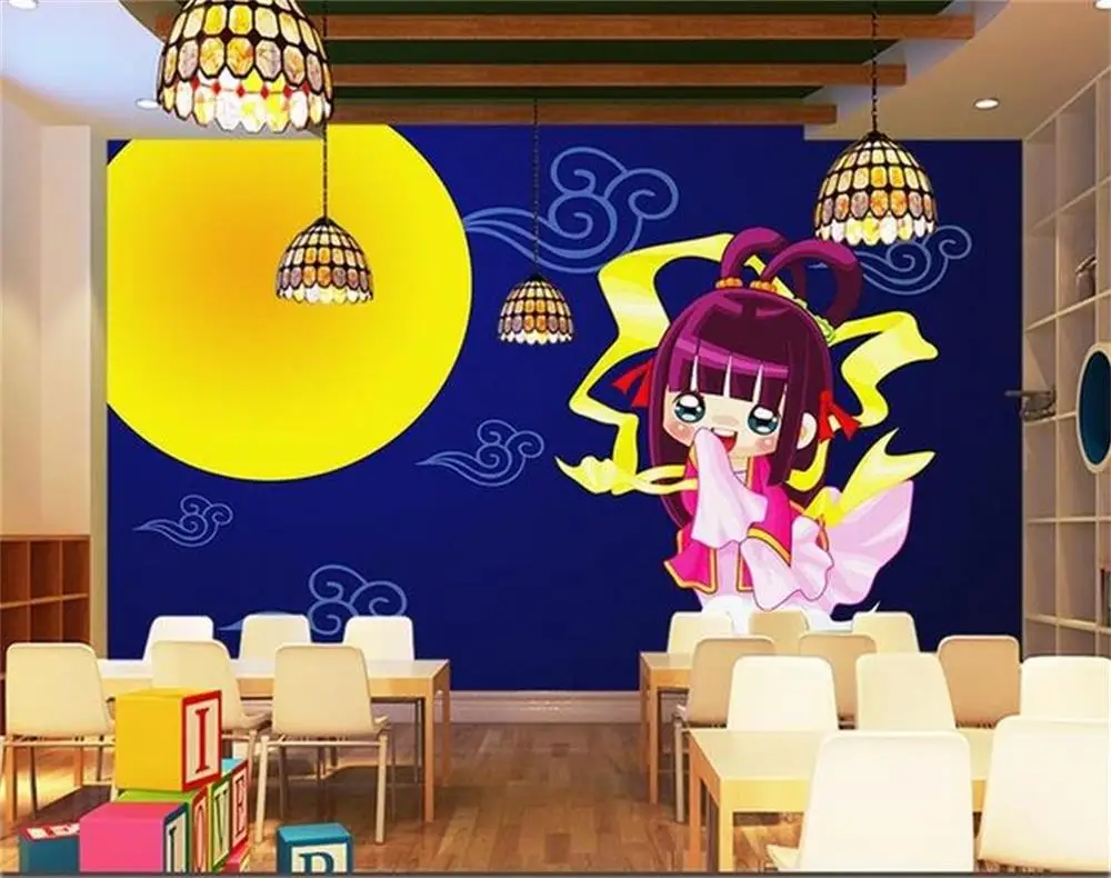 3d Wallpaper Custom Photo Wall Paper Cartoon Young Lasses Moon Tv