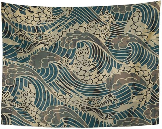Aocck Tapestry Wall Hanging Japanese Pattern With Dragons Chinese