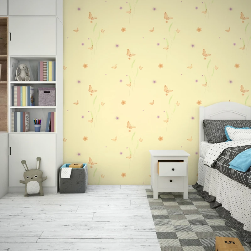 2020 New Yellow Chinoiserie Wallpaper Sticker Peel And Stick Bedroom Decor Butterfly Floral Wallpapers Kids Room