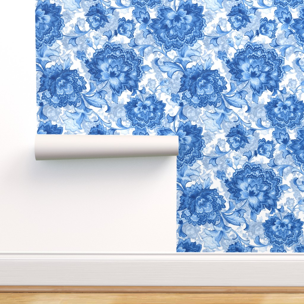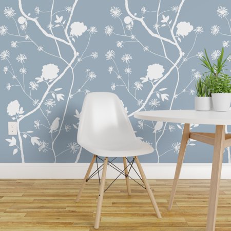 Peel And Stick Removable Wallpaper Blue Floral Chinoiserie Monochromatic Modern Walmart Com