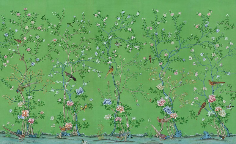 Chinoiserie Handpainted Wallpaper Panel Size 50 X Etsy
