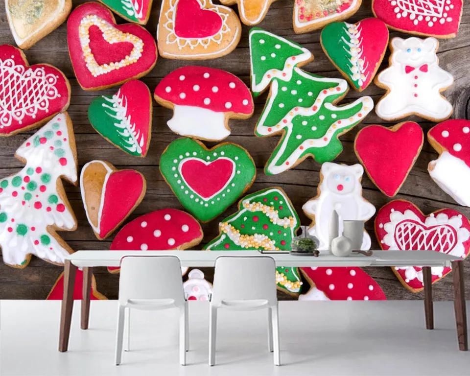 Papel De Pared Christmas Cookies Mushrooms Heart Tree Food 3d