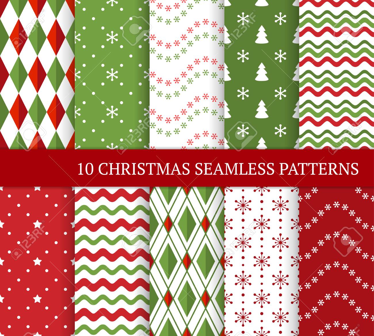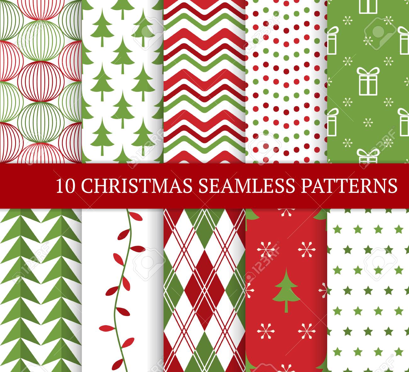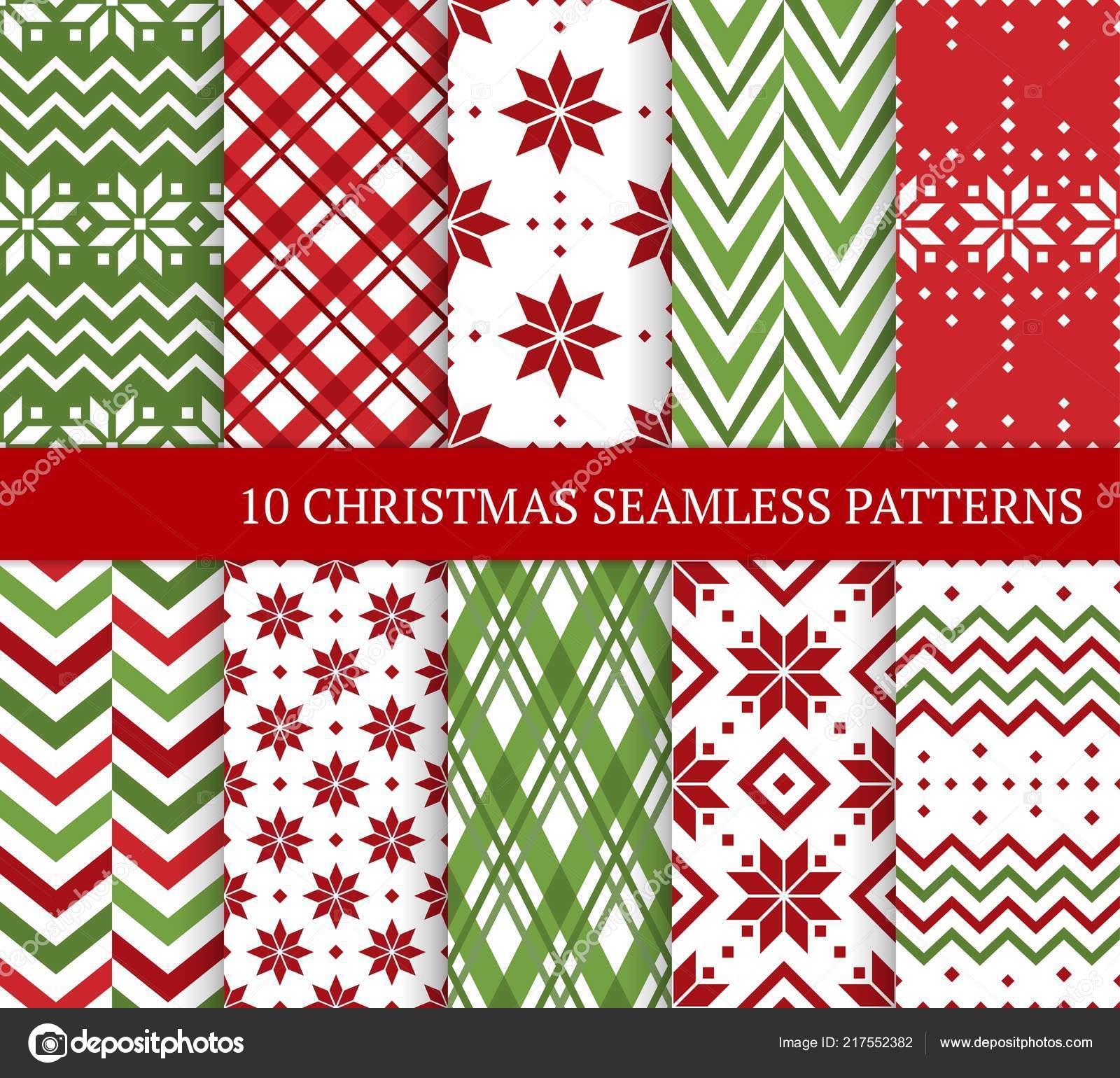 Ten Christmas Different Seamless Patterns Xmas Endless Texture