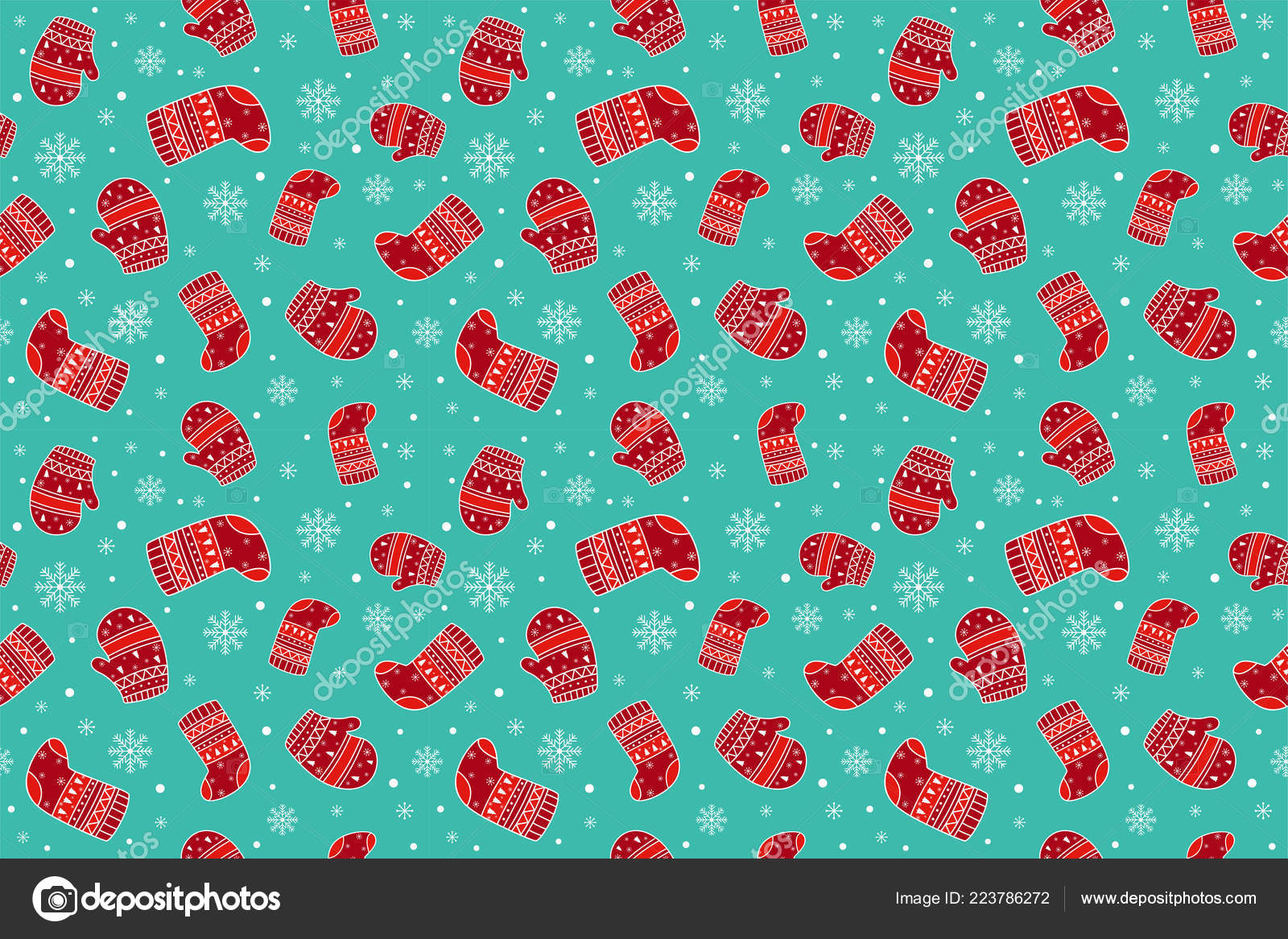Merry Christmas Pattern Seamless Christmas Gloves Socks Background
