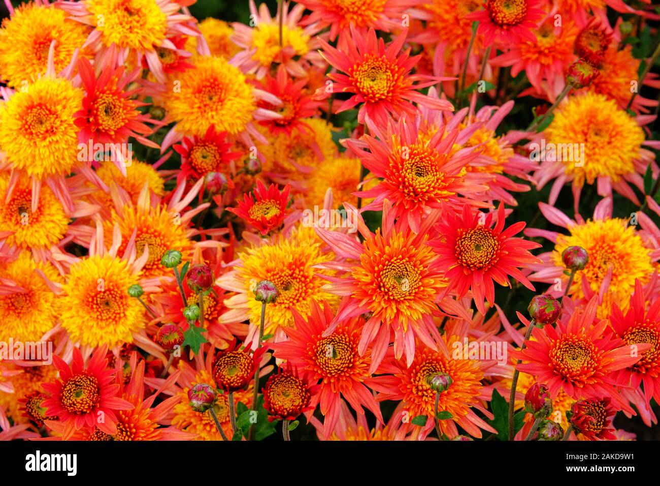Orange And Red Chrysanthemums In Gardening Nursery Chrysanthemums