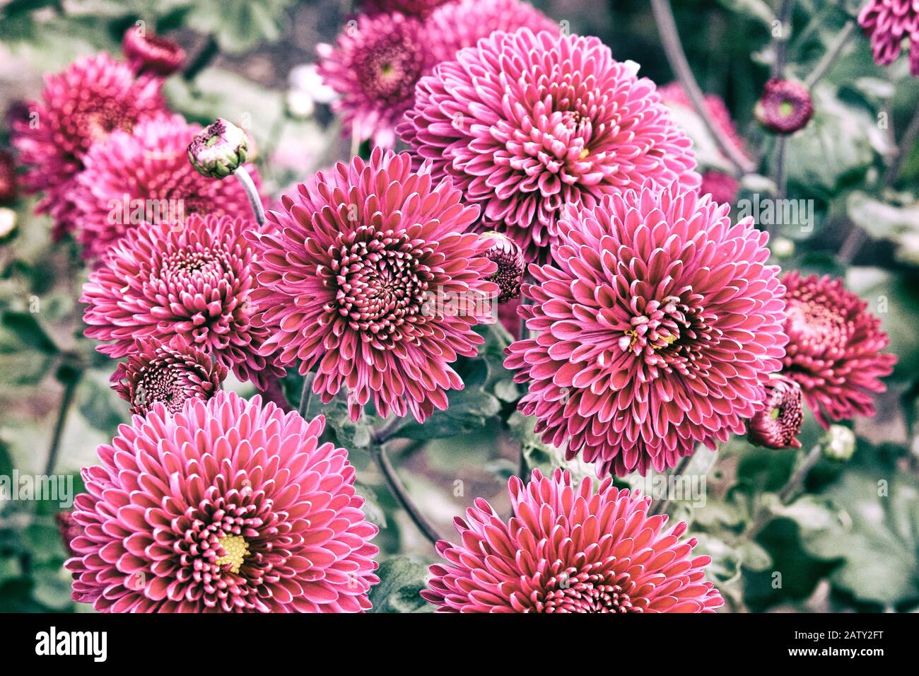 Chrysanthemum Flowers As A Background Close Up Burgundy Purple