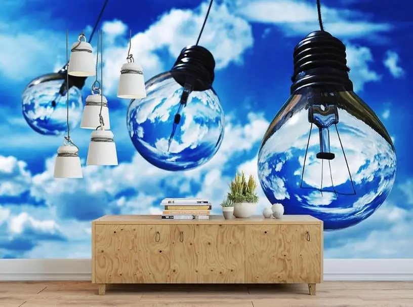 European Creative Mural Wallpaper Light Bulb Blue Sky Hd White