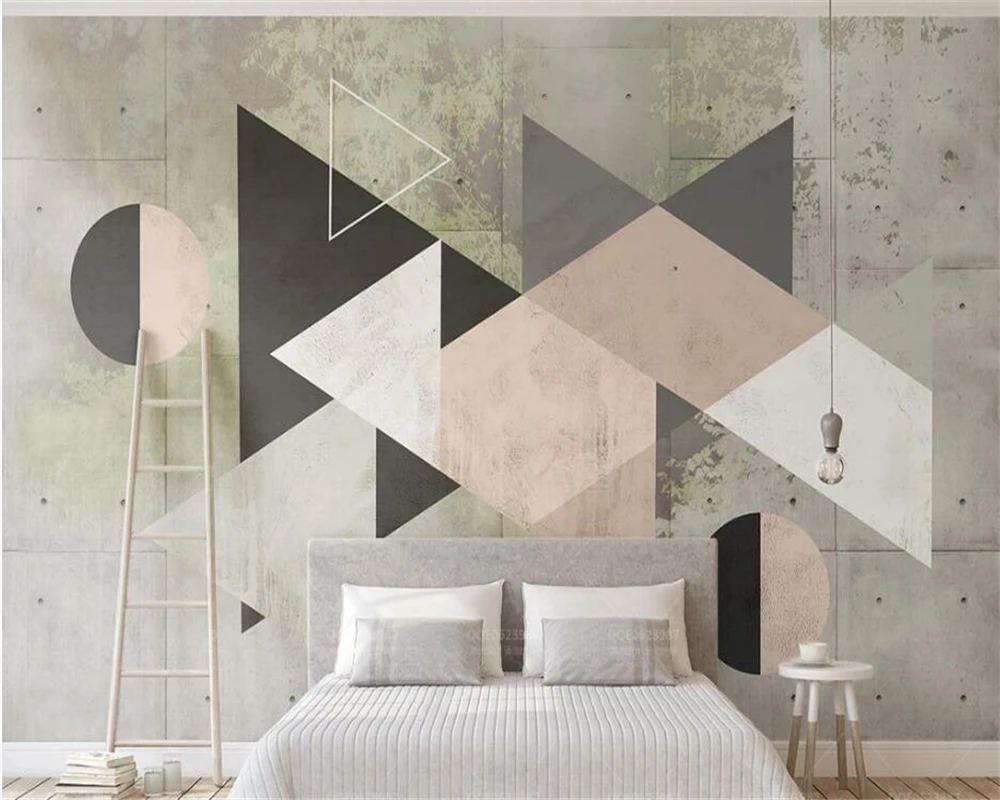 Beibehang Custom Wallpaper 3d Mural Retro Geometric Triangle Color