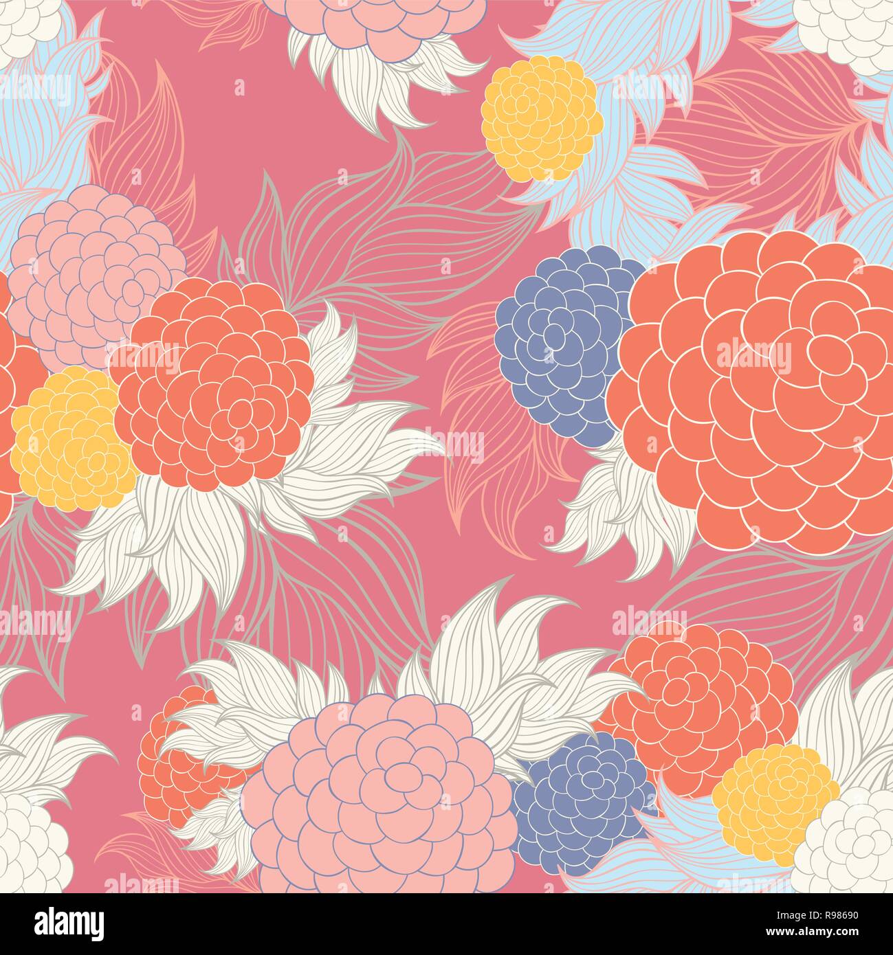 Colorful Floral Pattern Vector Wallpaper With Big Illustration