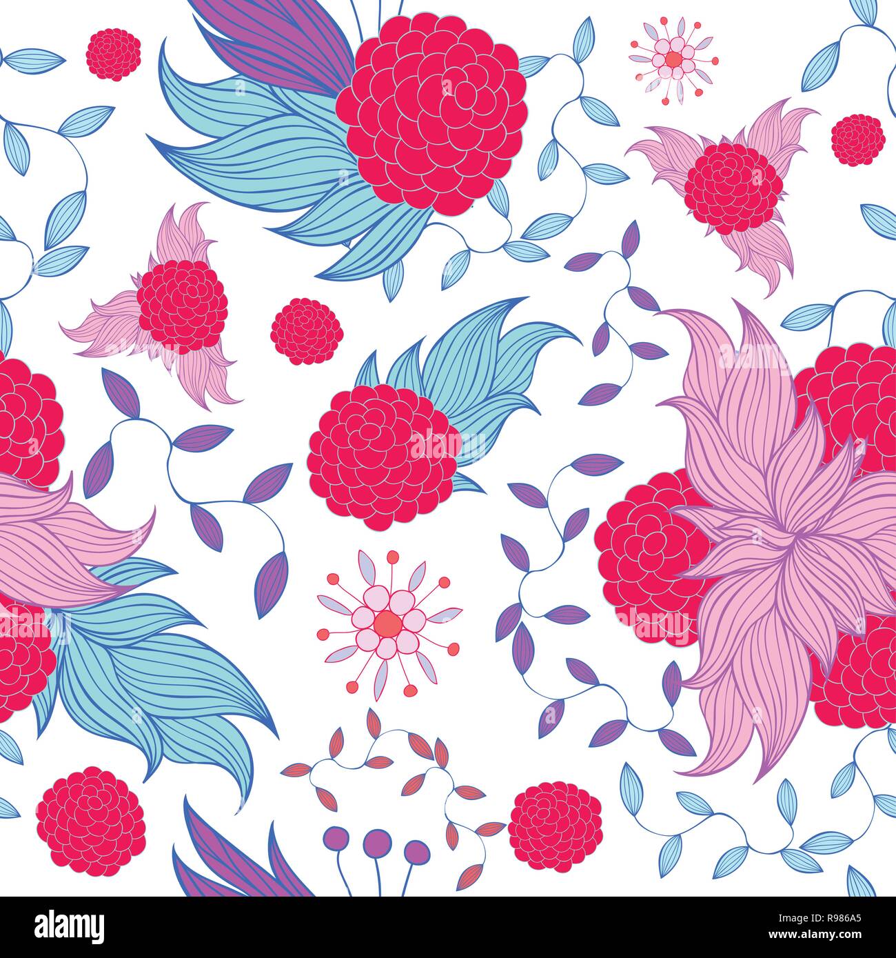 Colorful Floral Seamless Wallpaper With Magnetic Hand Drawn