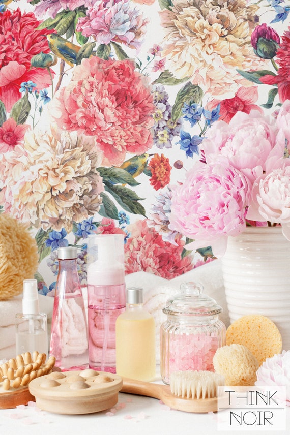 Colorful Floral Wallpaper Floral Removable Wallpaper Flower Etsy