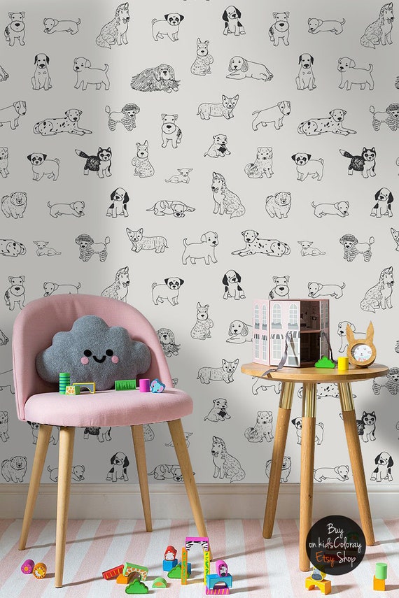 Doggy Coloring Wallpaper Black And White Colouring Wallpaper Etsy
