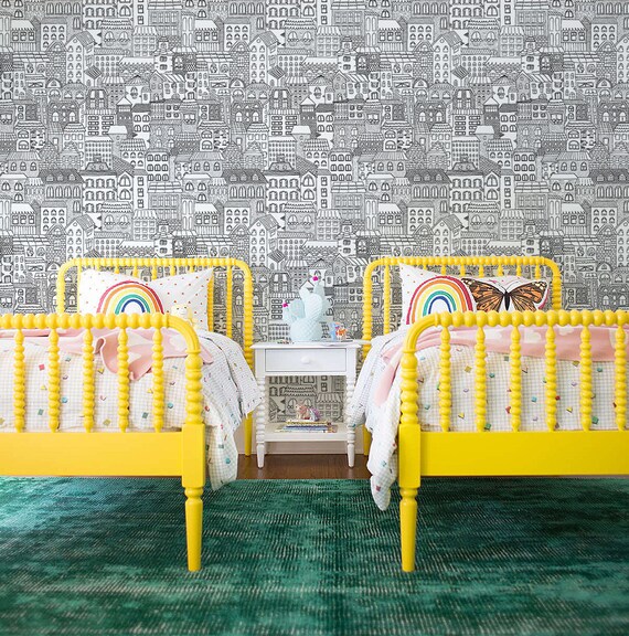 Buildings Coloring Wallpaper Black And White Colouring Etsy
