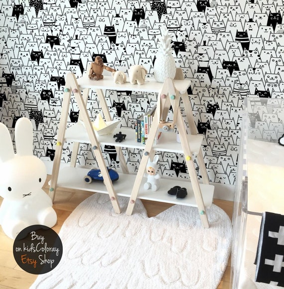 Cats Coloring Wallpaper Black And White Colouring Wallpaper Etsy