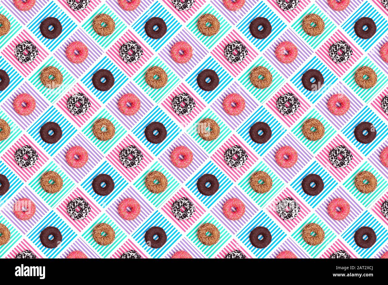 Seamless Pattern Of Pink White And Chocolate Donuts On Multi