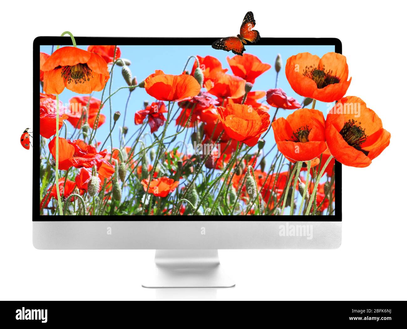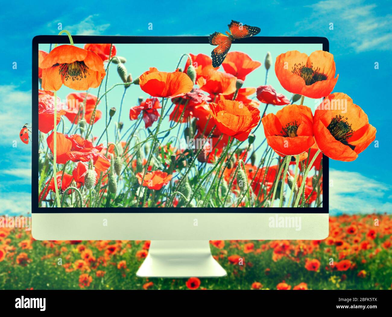 New Modern Computer With Nature Wallpaper On Screens On Poppies