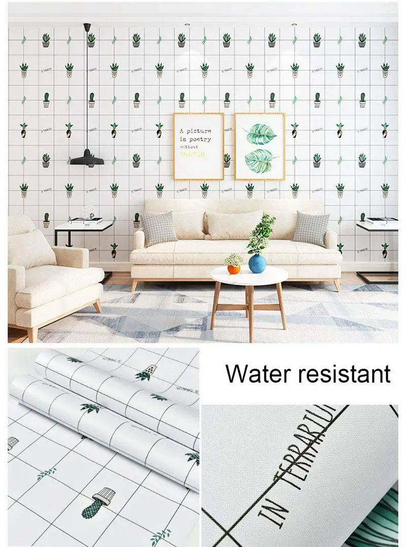 Glow4u Self Adhesive Stripe Plaid Cactus Contact Paper Wallpaper