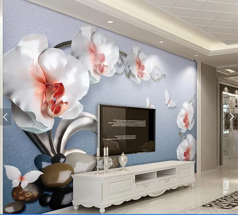 Custom Butterfly Orchid Floral 3d Wall Paper For Living Room