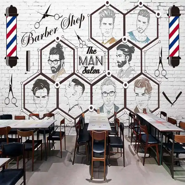 Barber Shop Hair Salon Wallpaper Style 3d Cool Retro Modeling Wall Wallpaper Creative Brick Pattern Salon Mural Aliexpress
