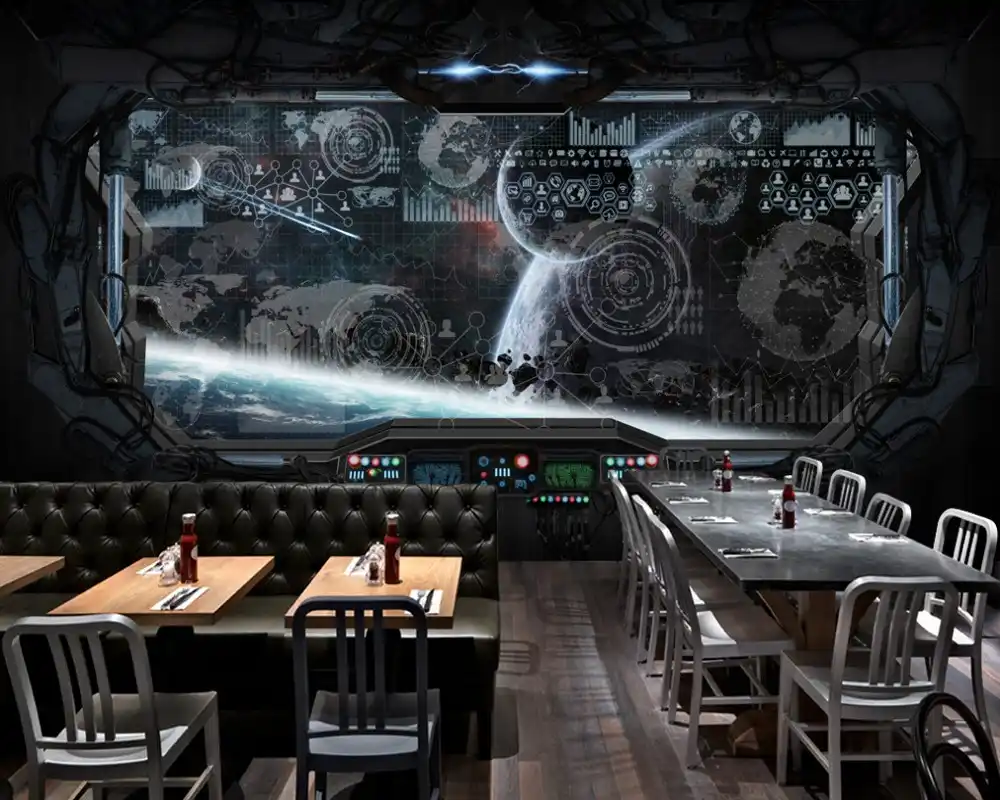 Free Shipping Custom 3d Fashion Restaurant Murals Cool Bar
