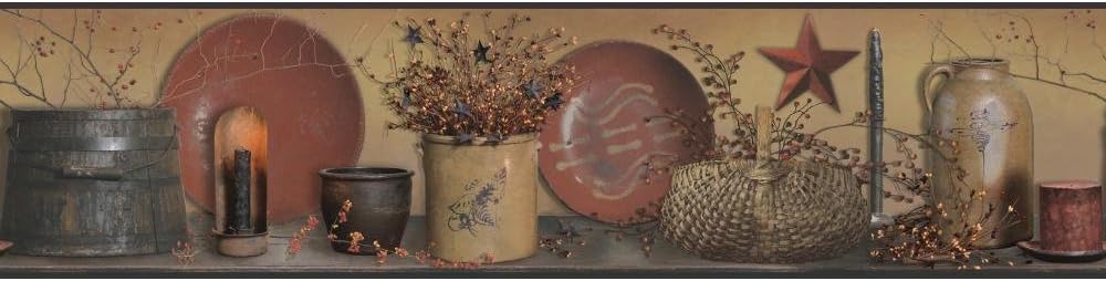 Brewster Brown Country Shelf Americana Pre Pasted Wallpaper Border