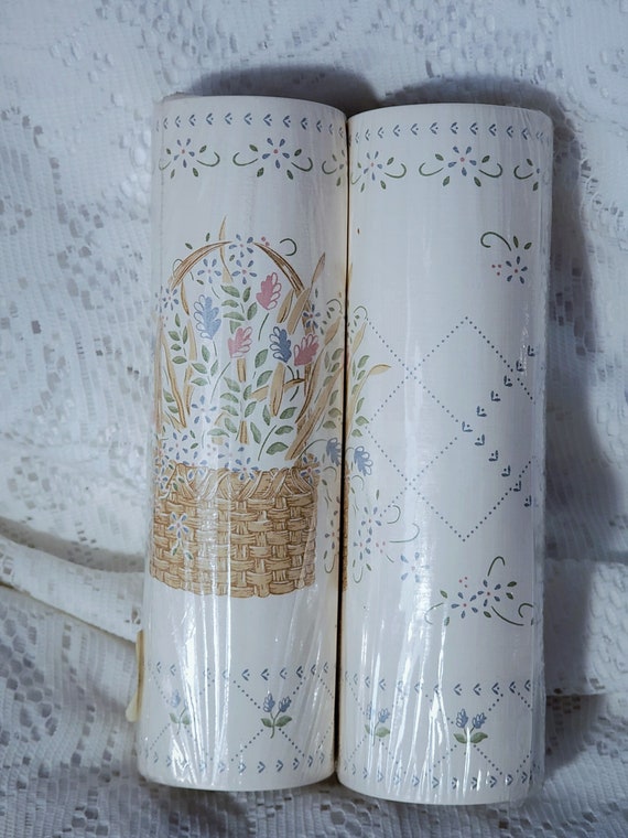 Floral Baskets Vintage Wallpaper Border Country Kitchen Blue Etsy