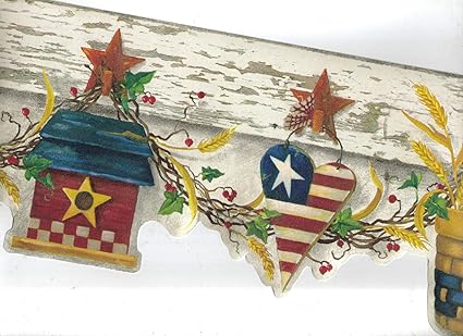 Wallpaper Border Hearts Stars Country Primitive Rustic New Arrival