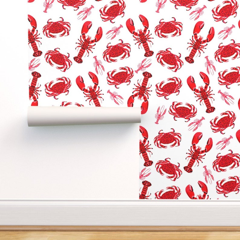 Crab And Lobster Wallpaper Crab Lobsters White Red By Andrea Etsy